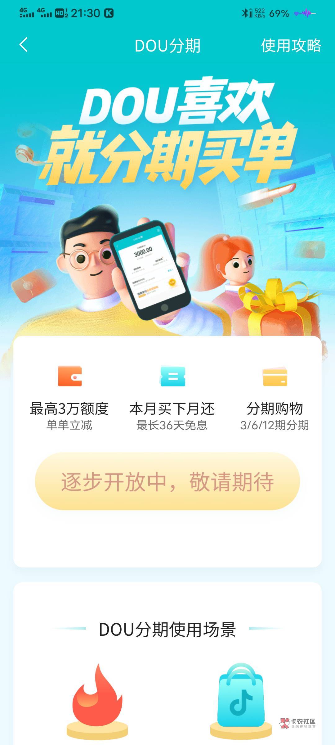 不过在“放心花”推出的时候,抖音客服也曾表示后期将开放到抖音App内的其他***窗口上使用,例如购买商品等。如果实现,“放心花”便与如今大范围上线的“Dou分期”一致,除了名称。